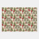 The colour palette of the wrapping paper predominantly consists of rich reds, deep greens, and crisp whites. The red of Santa's suit and hat pops against the snowy backdrop, while the green of the trees adds a traditional and comforting touch to the design. The white of the snow ties the elements together, creating a harmonious and wintry ambiance.