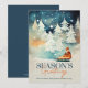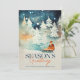 This card design is filled with colour and the joyous of a winter wonderland vintage vibe: White Christmas trees sants on a sled: elegant script, and serif typography.