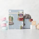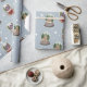 This delightful pattern features an enchanting series of snow globes showcasing cosy, snow-covered cottages surrounded by pine trees. Each snow globe is decorated with festive red bows and intricate details, all set against a soft blue background filled with gently falling snowflakes. The repeating design creates a warm and magical holiday atmosphere, perfect for the winter season.