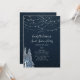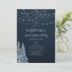 This Sweet 16 Birthday Party invitation features an elegant winter theme design. This item is shown on standard paper, but can be customised to any colour paper you wish. There are many options for personalisation! Enter in your own information, or customise it to remove any element you desire. Great for an elegant event and is sure to wow your guests. The front is designed with a blue background featuring winter trees, snowflakes and string lights. The back is a coordinating design of snow falling on a blue background.