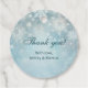 Celebrate the happy couple with a winter wonderland! Snowflakes and shimmery lights scatter among a pale blue background in a subtle winter wood to bring the beauty of winter inside for your celebration on this pretty favour tag. Use on favours to thank your guests and make a shimmering impression at your wintertime wedding or other winter wonderland event. This tag can also be customised for an engagement party, anniversary celebration, or birthday party. Available with matching products.