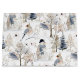 Charming winter design featuring hand-painted snowmen in scarves and hats, delicate trees, and soft pastel branches accented with cardinals. This seamless pattern captures the magic of a snowy landscape with cosy seasonal details, blending whimsical artistry and festive charm.