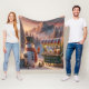 Winter Wonderland Snowman's Hot Chocolate Cart Fleece Blanket