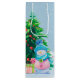 This wine bag design features two snowmen, in front of Christmas tree. Both snowmen are wearing their winter hats and scarves. This design wraps around the bag.
