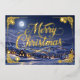 This charming Christmas card features a classic winter scene at nighttime with the moon full and reflecting off the snow in the cute town nestled mountain valley. The design is elevated by a gold foil Merry Christmas adding a touch of festive magic. Inside, the card holds a typical holiday saying, ready for a personalised signature.