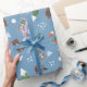 Super cute wrapping paper for children's gifts, featuring foxes, bears, squirrels, rabbits, and owls with snowballs and snow-covered spruces.
