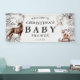 Wow guests with this enchanting winter gender neutral baby shower banner. Featuring a crisp white backgroud, stunning forest foliage, cute watercolor woodland animals and a template that is easy to customise.