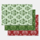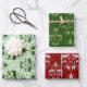 Classic damask pattern in Winter Woodland theme w/ hand-drawn reindeer, fir trees, snowshoe rabbits, cardinals, winterberries, holly, and snowflakes in three colorways with green and cranberry.