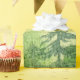 Watercolor pine tree forest with birds.