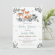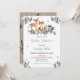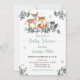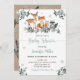 This adorable invitation features woodland animals in the snow with a greenery pine border.