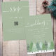 Winter Woodland Sage Green Wedding Invitation with Watercolor Fir Trees, Script Typography & QR Code RSVP