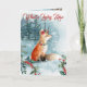Winter Woodlands Fox Blue Modern Snow Watercolor Holiday Card