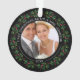 A perfect gift for the newlyweds, this elegant acrylic Christmas ornament features front and back photos encircled by a wreath of winter greenery and red berries. "First Christmas as Mr and Mrs." curves over the top of each photo, with the year beneath. Customise this round ornament with a wedding photo on each side to create a unique keepsake of your first Christmas as newlyweds.