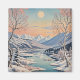 Surprisingly: Ice doesn't always freeze solid! Tiny air bubbles and impurities can create stunning patterns and textures within the frozen surface. This serene design captures the peaceful beauty of a winter landscape, featuring a tranquil lake surrounded by snow-covered trees and majestic mountains. The setting sun casts a warm glow over the scene, creating a breathtaking vista that evokes a sense of calm and wonder. Perfect for adding a touch of winter magic to any project.