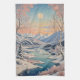 Surprisingly: Ice doesn't always freeze solid! Tiny air bubbles and impurities can create stunning patterns and textures within the frozen surface. This serene design captures the peaceful beauty of a winter landscape, featuring a tranquil lake surrounded by snow-covered trees and majestic mountains. The setting sun casts a warm glow over the scene, creating a breathtaking vista that evokes a sense of calm and wonder. Perfect for adding a touch of winter magic to any project.