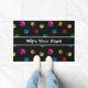 Welcome your guests and show your love for animals with this cute and colourful paw print patterned door mat. The paws seem to be waving "Hi". Use the provided template to personalise it with your name or phrase. Tip: You can change the white text and border colours to your favourite.