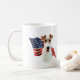 USA! America! Shout your pride with this awesome flag Patriotic background with this AKC dog breed Wire Fox Terrier in the forefront. Show your pride with this design on a t-shirt, mug, and much, much more!
