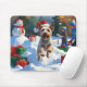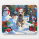 Wire Fox Terrier Running Snow with Christmas Hat Mouse Mat