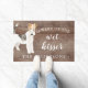 Funny beware of the wet kisser" Wire Haired Fox Terrier Dog door mat set on a rustic faux background. Visit our shop to view a large assortment of dog breads