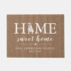 Personalised home sweet home door mat featuring a Wire Haired Jack Russell dog, with your family name & year established, set on a brown burlap look background
