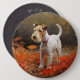 Wirefox Terrier in Autumn Leaves Fall Inspire 6 Cm Round Badge
