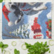 Wirehaired Pointing Griffon in Snow Christmas Hat Tea Towel
