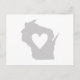 Wisconsin Grey State Map Shape with Heart Cutout Postcard