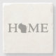 Featuring the word home in a bold font with the letter O replaced by the outline silhouette map shape of the Badger state this Wisconsin home state word art stone coaster is a great way to share your love for your home state of Wisconsin and protect your furniture from nasty condensation rings at the same time.