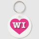 This keychain features a vibrant hot pink heart containing the bold, white, upper case letters WI, the official abbreviation for Wisconsin, the badger state.