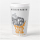 Fun and colourful typographic mug design with a retro feel features the state of Wisconsin's nickname: The Badger State displayed within a state shaped silhouette