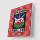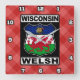 Classic US route sign style design, with the text WISCONSIN WELSH, and the flags of the state of Wisconsin and Wales.
