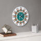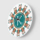 Wall clock features an original illustration of a cute brown and blue owl. Just personalise with your initial!