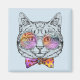 This design features a cute, cool cat wearing rainbow glasses and a polka dotted bow tie.