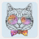 This design features a cute, cool cat wearing rainbow glasses and a polka dotted bow tie.