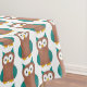 Tablecloth print features an original marker illustration of a wise brown owl.