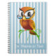 A wise owl looks out over his spectacles on this blue striped notebook design. Embellished with a notched ribbon banner that is ready to be personalised with your name or other text. Replace the sample text shown in the design template. To change fonts and font colours, choose the "Customise It" button.