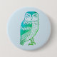 Wise Owl line drawing blue green 7.5 Cm Round Badge