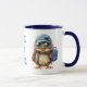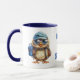 Wise Owl with Blue backpack, hats and an eyeglass, Mug