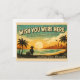 Send a little sunshine with a side of humor. This vintage-inspired travel postcard features a warm sunset beach scene, palm trees, and a nostalgic skyline, paired with the playful message “Wish You Were Here (But I’m kinda enjoying the quiet)”. Designed in a classic mid-century travel poster style, it captures the carefree spirit of a getaway with a modern, witty twist.