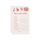 Add fun and laughter to your baby shower with these Italy pizza–themed Wishes for Baby cards! Designed with red, green, and rustic pizza shop accents, these cards feature charming Italian flair, perfect for matching your pizza party décor. Guests can guess whether statements are over or under the real number, creating a lively and interactive activity. Personalise for your event and coordinate with the full Italian pizza baby shower collection for a cohesive look.