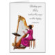 Harpist with text: "Wishing God's richest blessings on this happy occasion" Matching postage stamps available on this site.