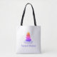 Bag with wishing stones in multicolored shades over three concentric circles and personalised text "Sacred Stones".