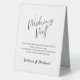 An elegant black & white wishing well tabletop sign at your wedding reception. Personalised with bride & groom names & set on table with your wishing well or gift box for the bride and groom.