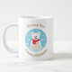 This large coffee mug features a Christmas-themed design with a bear in a circle or bubble and curved text "Wishing You A Bear-y Christmas". The text can be personalized, including the colour.