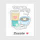 Blue, teal and pink coffee, cream and sugar packet hand drawn whimsical art. Cute for a coffee lover. Wishing you a brew-tiful day.