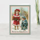 Victorian children gathering twigs with the greeting "Wishing You a Happy Christmas". Image of a Vintage Christmas Greeting Card on a custom grayish green background.