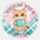 Wishing You a Happy Day | Cute Cat Classic Round Sticker
