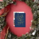 Handlettered "wishing you a happy hanukkah" blue and gold foil; background colour is editable; photos on the back. postcard version