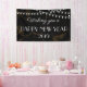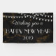 This Wishing you a Happy New Year banner features string lights and a faux gold black marble background. Personalise it with the year.