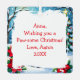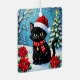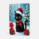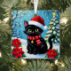 Cute Christmas cat themed ornament with a beautiful black cat in Santa hat with red poinsettias and snowy Christmas tree background. On the back you can add your own custom message.